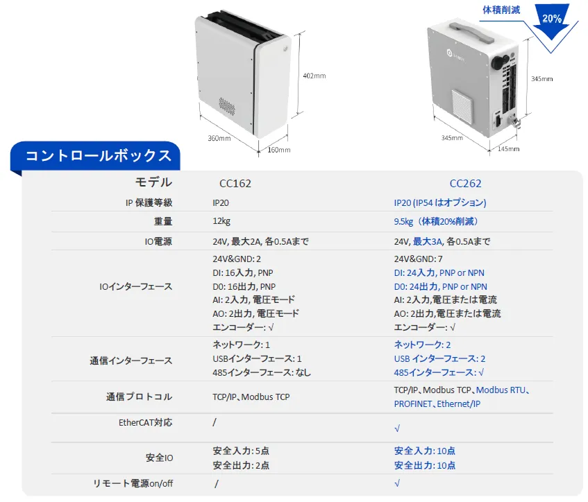 ・工場出荷時の速度および加速度は、最適化された運動学および動力学アルゴリズムに基づき大幅に改善され、ロボットの動作がより速くなっています。